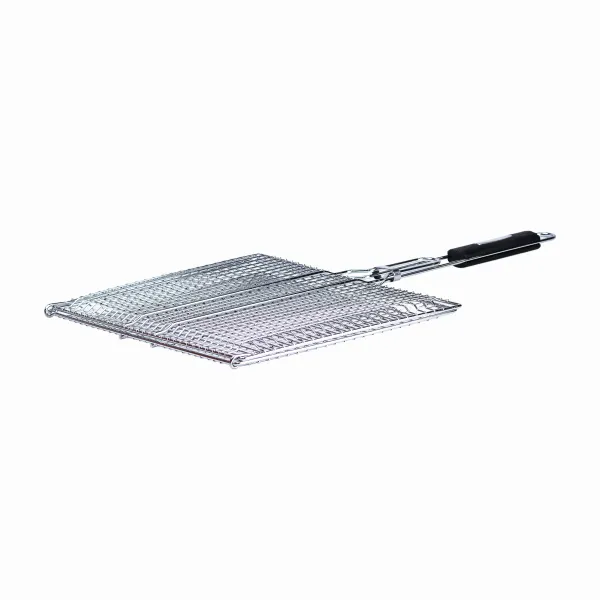 Для приготовления пищи с этой решеткой не понадобится мангал. Вы можете установить ее на любую устойчивую опору или даже держать в руках за длинную ручку, которая оснащена защитной накладкой, что убережет вас от ожогов.
