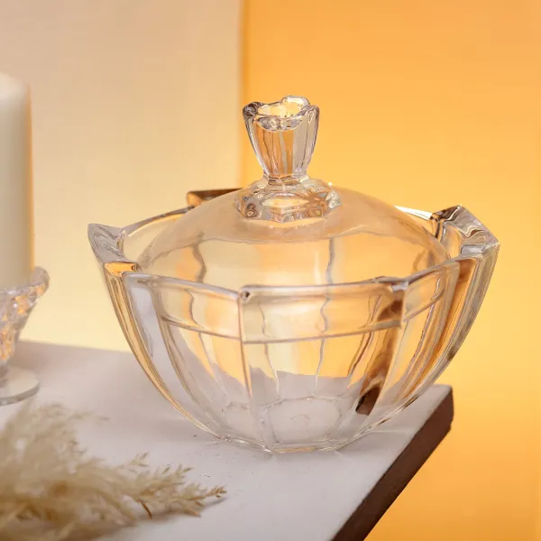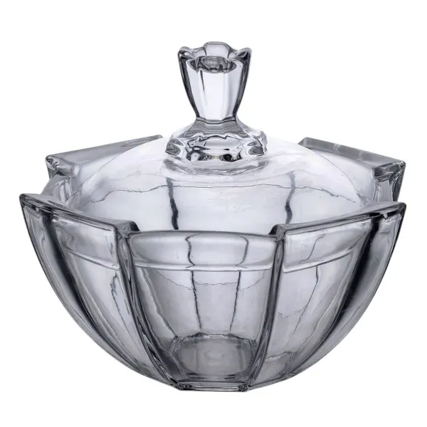 Сахарница Danny Home изготовлена из толстого прозрачного стекла и имеет округлую форму с широким диаметром. Изделие оборудовано плотной стеклянной крышкой с массивной ручкой, которая удобно ложится в руку. Благодаря сочетанию толстых стенок и значительного веса (1,2 килограмма), сосуд устойчив и хорошо держится на поверхности.