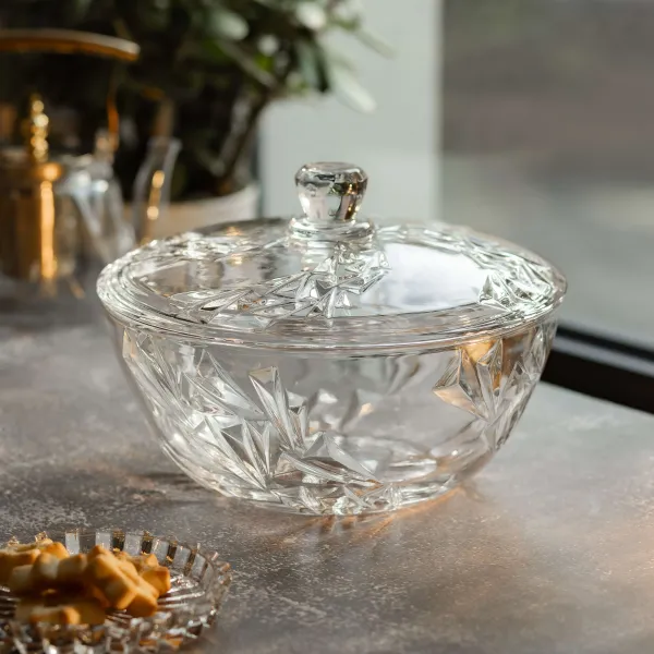 Салатница с крышкой изготовлена из толстого стекла, что обеспечивает ее прочность и долговечность. Благодаря прозрачному материалу можно легко контролировать содержимое, что делает ее удобной для сервировки различных блюд. Стеклянная конструкция не впитывает запахи и не окрашивается, что позволяет использовать ее для различных видов продуктов.