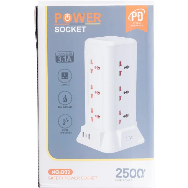 Сетевой фильтр-удлинитель Tower - многофункциональное устройство для организации удобного доступа к электропитанию. Фильтр имеет конструкцию башни и 8 розеток, что позволяет значительно экономить место. Также предусмотрены 2 порта USB-A и разъем USB-C. Устройство поддерживает беспроводную зарядку и технологию Power Delivery.
