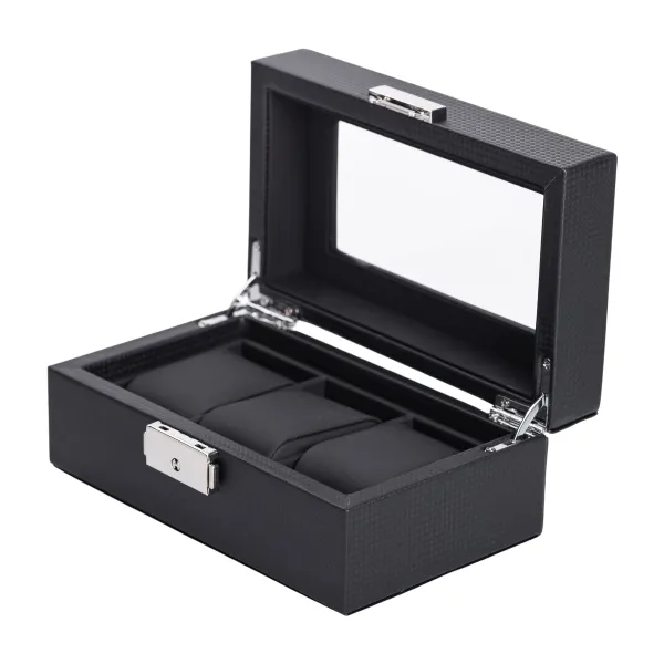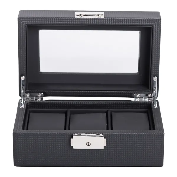 Шкатулка для часов размером 19х11,5х8 см - отличный выбор для личного и коммерческого использования. Шкатулка имеет 3 отсека и прозрачную крышку, что позволяет не только организовать хранение коллекций, но и выгодно их презентовать на витрине или стенде. Внутренняя отделка выполнена из экокожи и отлично подходит для различных металлов, которые используются в изготовлении корпусов.
