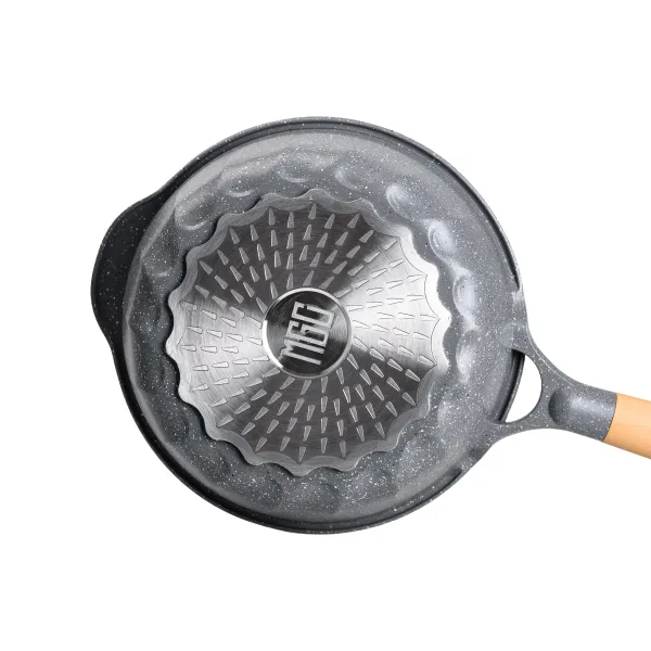 - Перед первым применением достаточно вымыть сотейник в теплой воде с мягким моющим средством и губкой, и высушить. После полного высыхания следует протереть антипригарное покрытие с небольшим количеством масла.