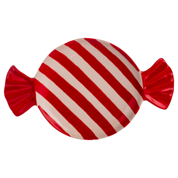 Фарфоровая тарелка в форме конфеты — это стильный элемент праздничной сервировки. Ее оригинальный дизайн с красными краями в виде завязок придает изделию выразительность и создает теплую атмосферу рождественского настроения. Благодаря ярким акцентам и сдержанному сочетанию белого и красного цветов, тарелка гармонично вписывается как в классический, так и в современный интерьер.