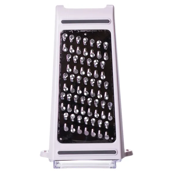 Терка оснащена противоскользящим основанием, что обеспечивает стабильность во время использования. При весе 400 граммов терка сохраняет баланс между легкостью и устойчивостью. Подходит для ежедневного использования на кухне, легко очищается и не требует сложного ухода.