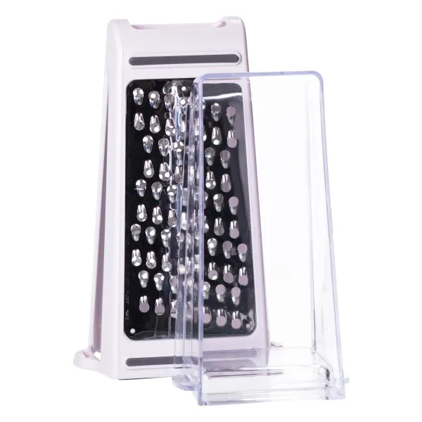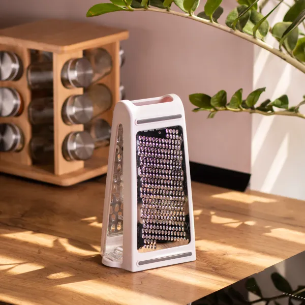 Двусторонняя терка с контейнером — функциональный инструмент для быстрого и чистого измельчения продуктов на кухне. Благодаря двум типам лезвий она позволяет натирать ингредиенты как на крупные, так и на мелкие кусочки. Контейнер крепится под рабочей частью и собирает натертые продукты, уменьшая количество крошек и сохраняя порядок на поверхности.
