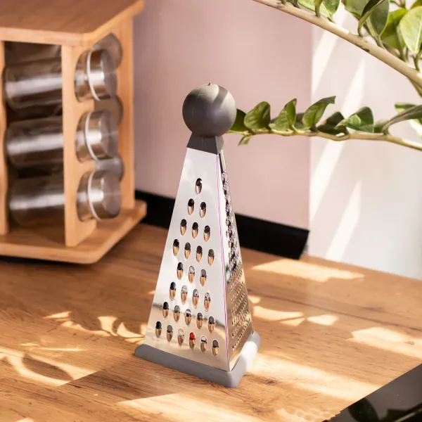 Трехсторонняя терка из нержавеющей стали — универсальный инструмент для ежедневного использования на кухне. Благодаря трем рабочим поверхностям с разным типом лезвий, терка позволяет быстро натирать или измельчать овощи, сыр, фрукты и другие продукты. Ее форма обеспечивает удобство использования даже при ограниченном пространстве.