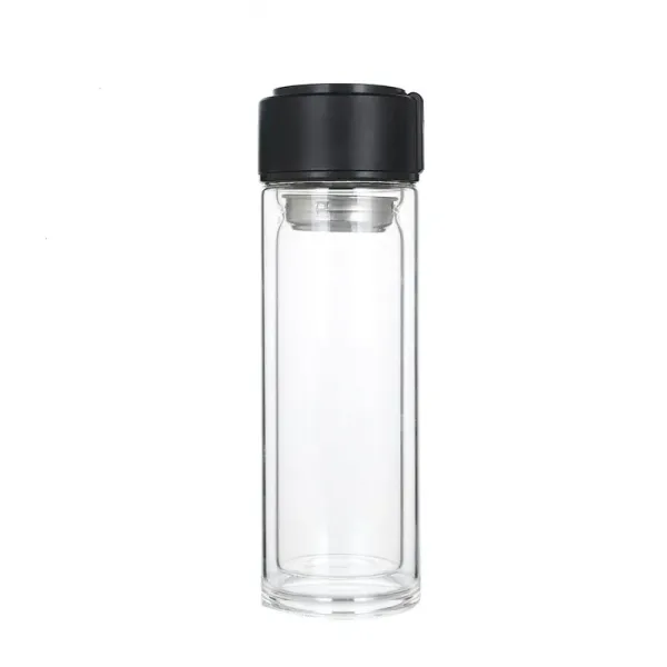 Термос стеклянный 300 мл с двойными стенками и ситечком, черный