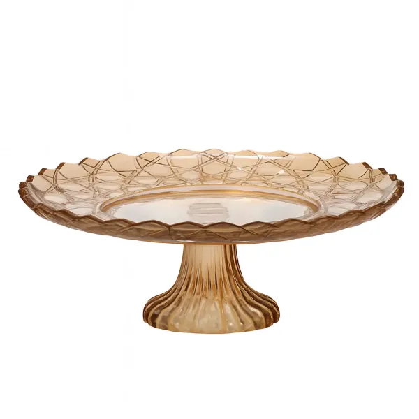 Диаметр изделия составляет 29 см, что обеспечивает достаточную площадь для размещения большого количества продуктов. Высота — 10 см, из которых 7 см приходится на ножку, которая придает элегантность и функциональность. Коричневый оттенок стекла гармонично сочетается с деревянными, текстильными или стеклянными элементами сервировки.