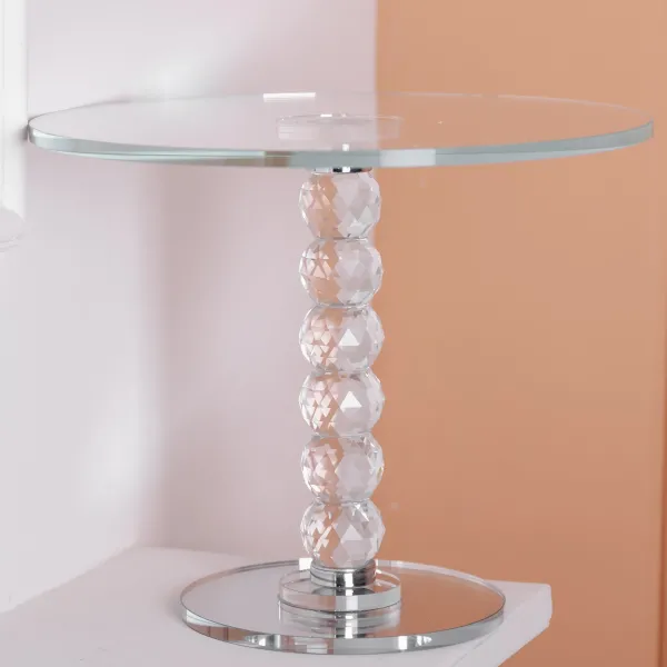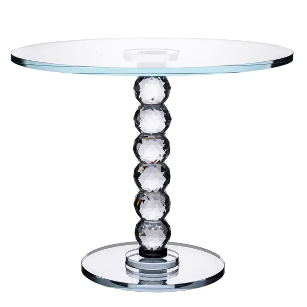 Стеклянная тортовница на ножке с минималистичным и современным дизайном - отличный выбор для праздничной сервировки. Круглая гладкая прозрачная поверхность обеспечивает надежное основание для десертов, а изящная ножка с декоративными элементами заставляет свет преломляться в каждой грани, создавая неповторимую игру бликов.