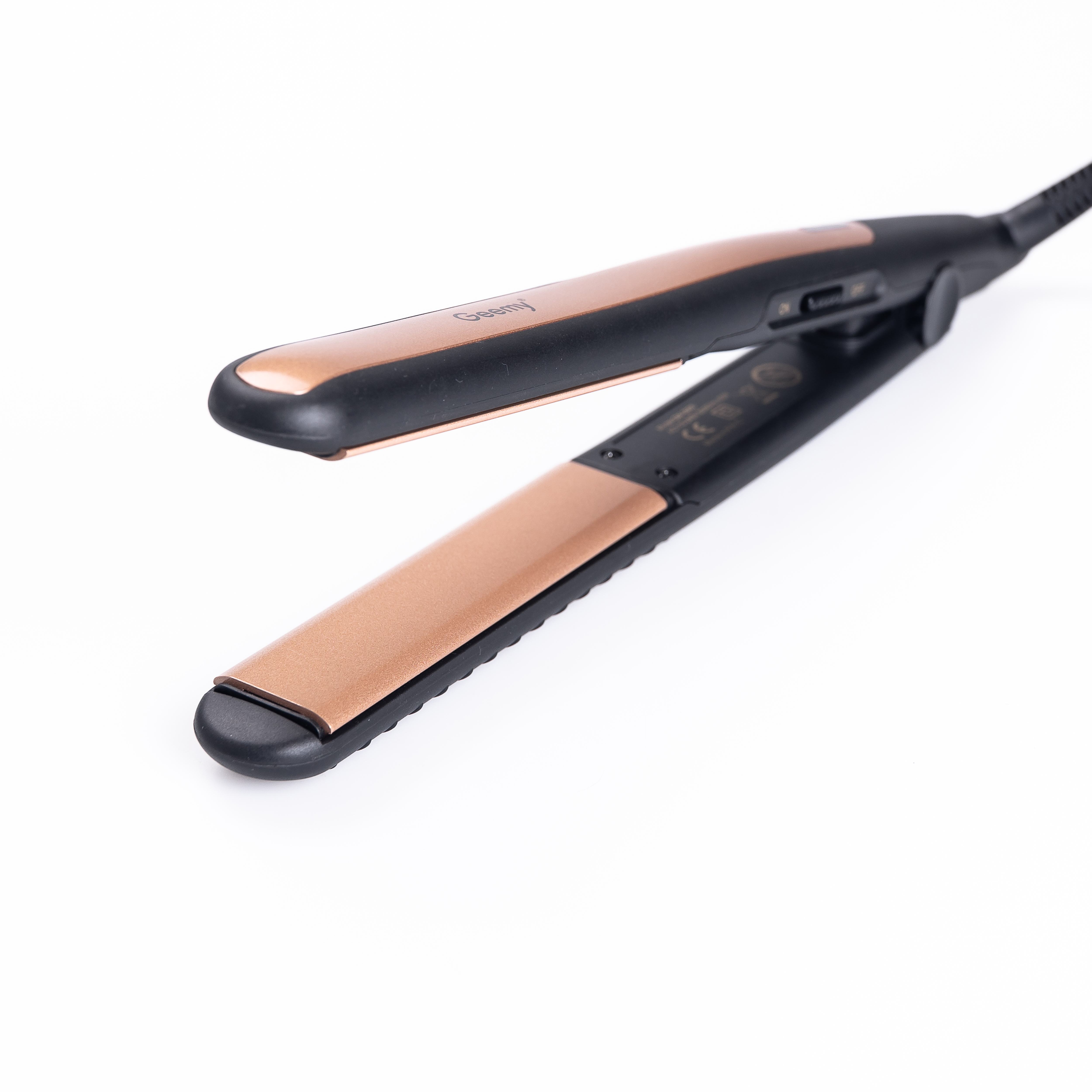 Утюжок для волос GEEMY GM-2955 - инструмент, с помощью которого можно за считанные минуты выровнять вьющиеся волосы или выполнить эффектную укладку. Благодаря турмалиновому покрытию пластин локоны не электризуются, а быстрый нагрев и равномерное распределение температуры исключают перегрев и пересушивание прядей.