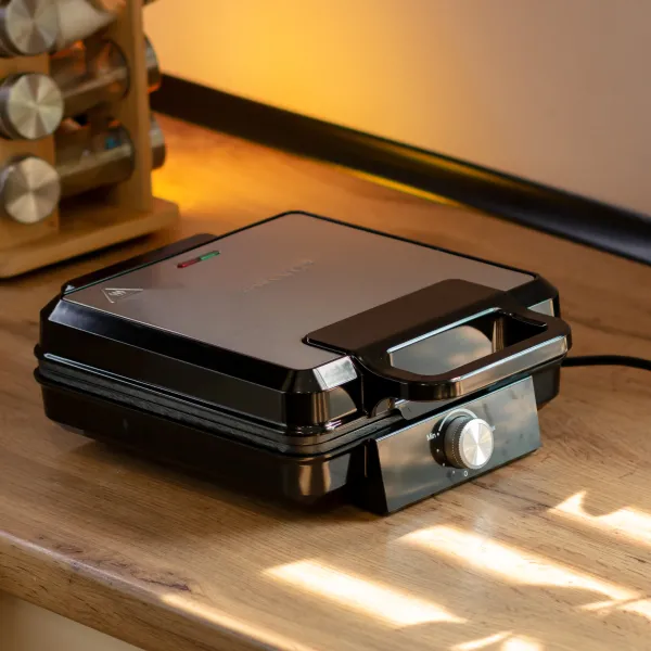Вафельница Sokany имеет 4 формы для выпекания, что позволяет одновременно приготовить несколько вафель. Антипригарное покрытие упрощает процесс приготовления и предотвращает прилипание вафель к рабочим поверхностям, что делает очистку простой и легкой. Светодиодный индикатор помогает контролировать степень готовности вафель.