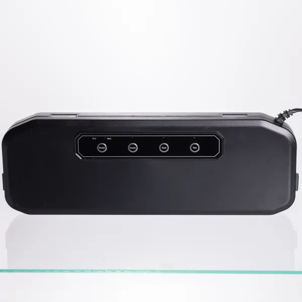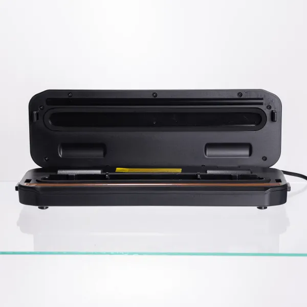 Вакууматор имеет простую, но надежную конструкцию. Длина шва запаивания составляет 26 см, сила всасывания - 50-65 кПа, благодаря чему можно быстро и эффективно удалять воздух из продуктов различной степени твердости.