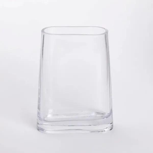 Стеклянная ваза для цветов изготовлена из прозрачного стекла высокого качества. Ваза имеет четкие геометрические линии и простой, элегантный дизайн, что позволяет ей органично вписываться в различные интерьеры. Ее размеры: высота 15.8 см, длина 9.5 см, ширина 5 см, что делает ее подходящей для различных цветочных композиций.