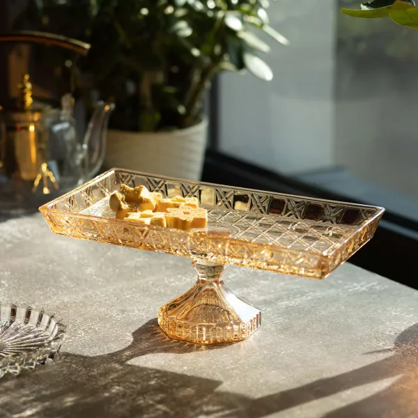 Фруктовница стеклянная на ножке имеет прямоугольную форму с размерами 27,5 * 13,5 см и высотой 10,5 см. Изготовлена из прозрачного стекла, что позволяет визуально оценивать содержимое. Конструкция включает устойчивую ножку, которая поднимает фруктовницу над поверхностью, обеспечивая удобство в использовании и эстетичный вид.