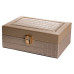 Скринька для зберігання прикрас із екошкіри допомагає організувати аксесуари, годинники та дрібні цінності в одному місці. Прямокутна форма робить її зручною для розміщення на туалетному столику, полиці або в шафі. Продуманий формат дозволяє підтримувати порядок і швидко знаходити потрібні речі щодня.