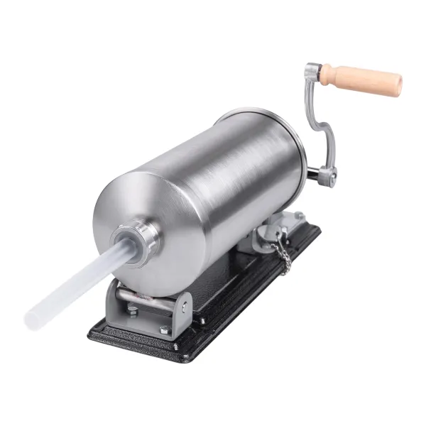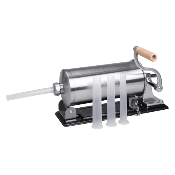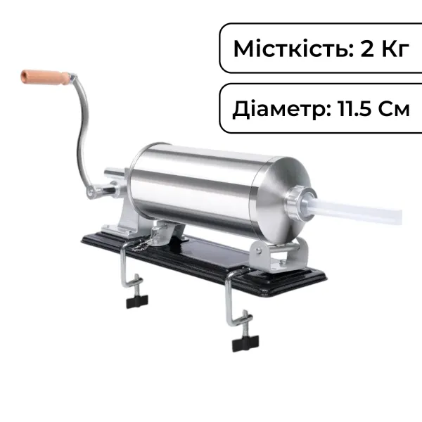 Шприц ковбасний на 2 кг - ідеальний інструмент та помічник у процесі наповнення оболонок ковбасним фаршем. Шприц має простий принцип роботи, ручний привід обладнано зручною ручкою. Для фіксації шприца на робочій поверхні в комплекті є 2 струбцини.