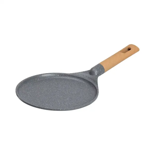 Завдяки діаметру 22 см сковорода дозволяє готувати більші млинці або кілька порцій швидко та ефективно. Низькі борти полегшують перевертання, роблячи процес приготування максимально зручним. Товщина дна 5 мм забезпечує рівномірне нагрівання та стійкість під час приготування на різних типах плит.