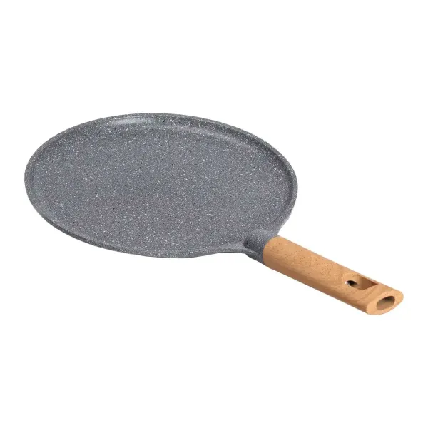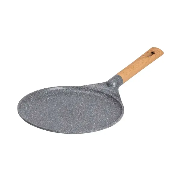 Завдяки великому діаметру 26 см, сковорода підходить для приготування млинців великого розміру, що додає зручності під час приготування для всієї родини або компанії. Низькі борти забезпечують легке перевертання млинців, а товщина дна 5 мм гарантує стабільне нагрівання та надійність при використанні.