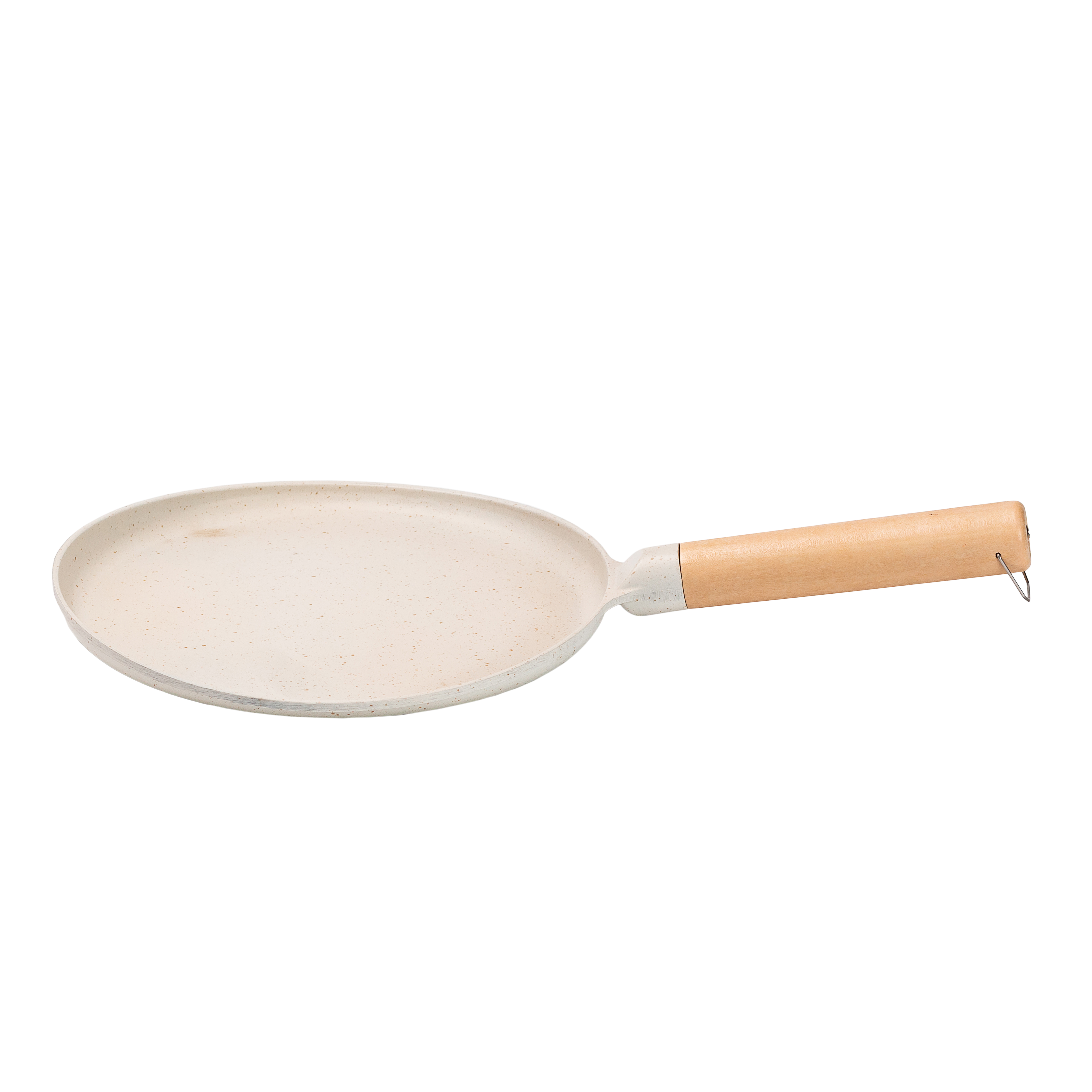 Сковорода має довгу ручку з бакеліту, яка не нагрівається та виключає ризик обпектися. Бортики різної висоти забезпечують зручний розподіл тіста та знімання готових млинців.