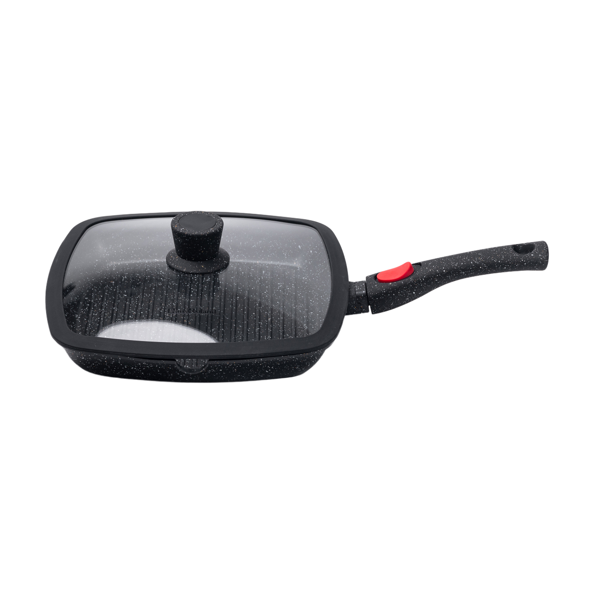 Квадратна сковорода – оптимальний варіант для приготування великих порцій їжі для сім'ї чи компанії. Вона вміщує більше продуктів порівняно з круглими аналогами і практично не залишає ділянок робочої поверхні, що не використовуються. Для зручності експлуатації сковорода має бакелітову ручку, кришка оснащена отвором для відведення пари.