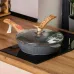 Сковорода діаметром 28 см – універсальний варіант для приготування різноманітних страв. Посуд виготовлений з литого алюмінію, добре проводить тепло та забезпечує рівномірний прогрів інгредієнтів. Сковорода має антипригарне керамічне покриття, завдяки чому можна готувати страви з мінімальною кількістю олії, а гладка внутрішня поверхня полегшує миття.