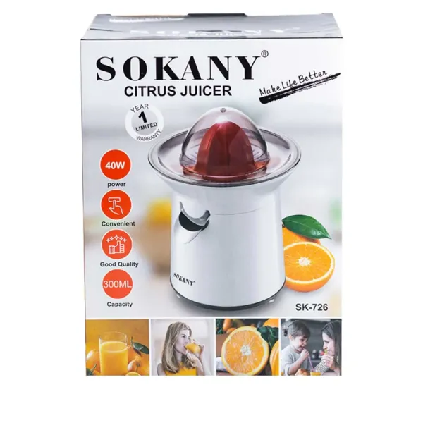 Соковичавлювач для цитрусових Sokany - це компактний та ефективний пристрій, створений для швидкого та легкого приготування свіжого цитрусового соку. З її допомогою можна швидко зробити смачний сік, який зберігає всі поживні речовини, що містяться у свіжих фруктах.