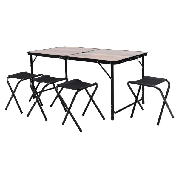 - Система «кейс»: Стіл складається навпіл, перетворюючись на компактну валізу з ручкою. Всі чотири стільця забираються всередину столу, що дозволяє переносити весь комплект однією рукою і акуратно зберігати його в багажнику.