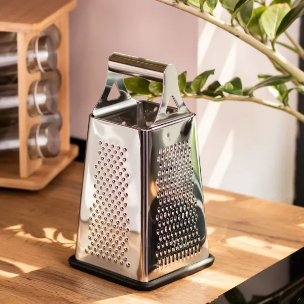 Чотиристороння кухонна тертка — практичне рішення для щоденного приготування страв. Вона оснащена чотирма робочими поверхнями з різними типами лез: для грубого та дрібного натирання, скибок і подрібнення. Такий інструмент дозволяє швидко та ефективно працювати з овочами, фруктами, сиром, шоколадом і не тільки.