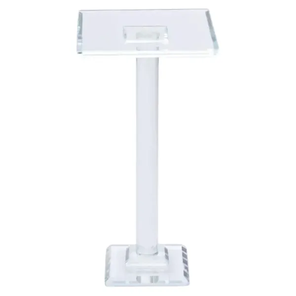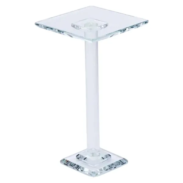 Скляна тортівниця на ніжці з мінімалістичним та сучасним дизайном - відмінний вибір для святкового сервірування. Квадратна гладка прозора поверхня забезпечує надійну основу для десертів, а особлива обробка граней змушує світло заломлюватись, створюючи неповторну гру відблисків.