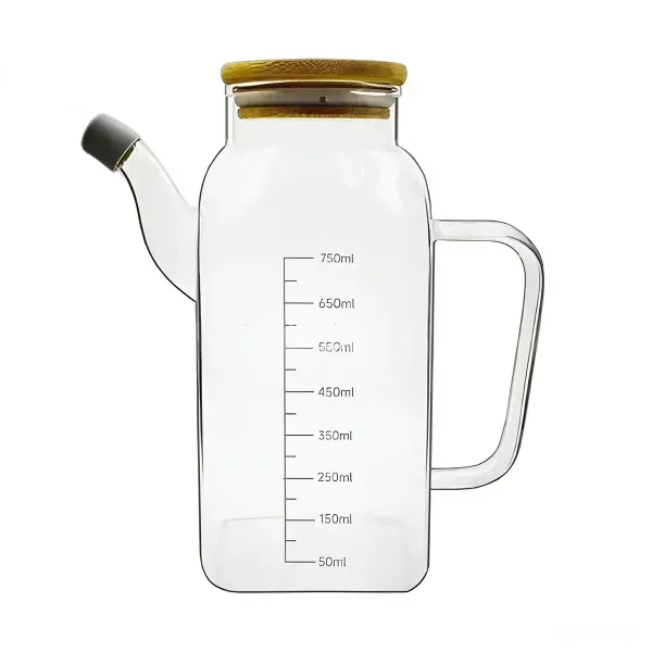 Місткість виготовлена з боросилікатного скла, стійка до перепадів температур і не піддається хімічному впливу. Прозорий корпус дозволяє контролювати кількість вмісту та вчасно поповнювати запаси, а тонкий носик робить заправку салатів та різних страв не просто процесом, а справжнім ефектним дійством, за яким цікаво спостерігати.