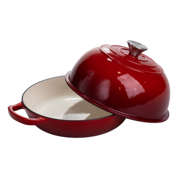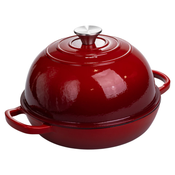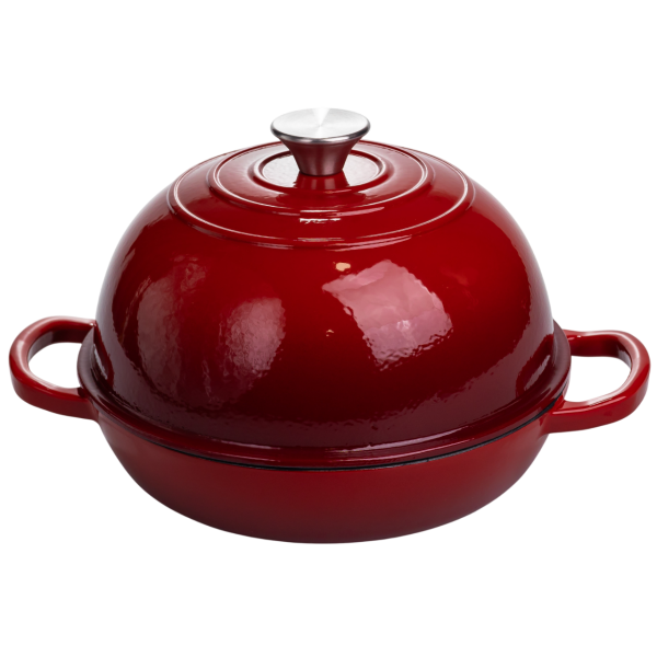 Емальована чавунна жаровня-голландська піч з куполоподібною кришкою - багатофункціональний елемент кухонного посуду, який підходить для приготування різноманітних страв